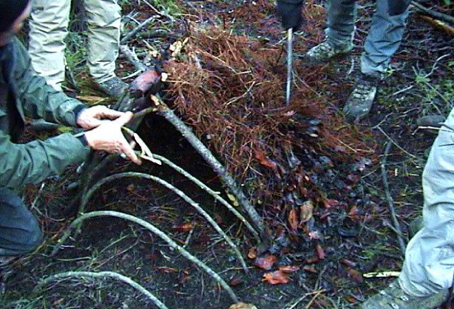 Barınak yapılabilecek materyallerin bulunması, barınak yerinin ve yönünün belirlenmesi ve barınak yapımı,